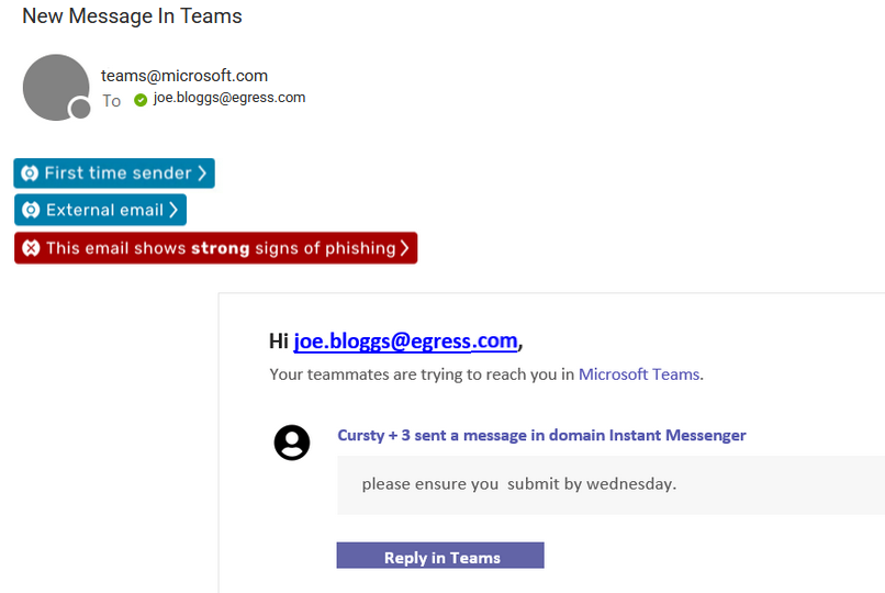 Defend bada wszystkie komponenty wiadomości e-mail przychodzącej jednocześnie. Oznacza to, że traktuje informacje nadawcy, treść wiadomości e-mail, załączniki, linki i metadane jako ujednoliconą całość. Analizując te elementy w kontekście, Defend jest w stanie zidentyfikować subtelne wzorce i nieścisłości, które mogą wskazywać na wyrafinowaną próbę phishingu.