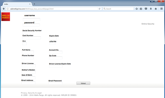 Należy zauważyć, że ten konkretny InMail wydaje się pochodzić z fałszywego konta Wells Fargo. Podany odsyłacz prowadzi do dość typowego phishingu na dane uwierzytelniające (hostowanego na już usuniętej domenie):